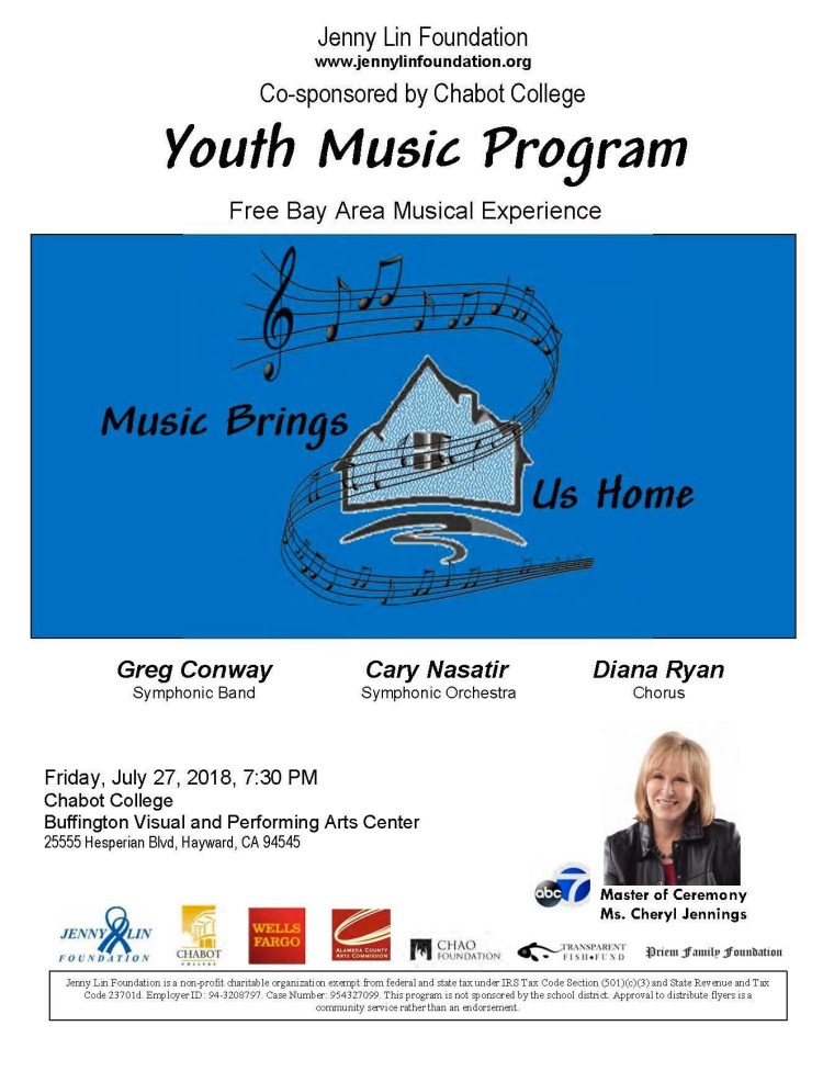 “Music Brings Us Home” – July 27, 7:30 PM Posted byJenny Lin FoundationJuly 22, 2018January 2, 2024Posted inPast News Share this: Share on Facebook (Opens in new window) Facebook Email a link to a friend (Opens in new window) Email Related