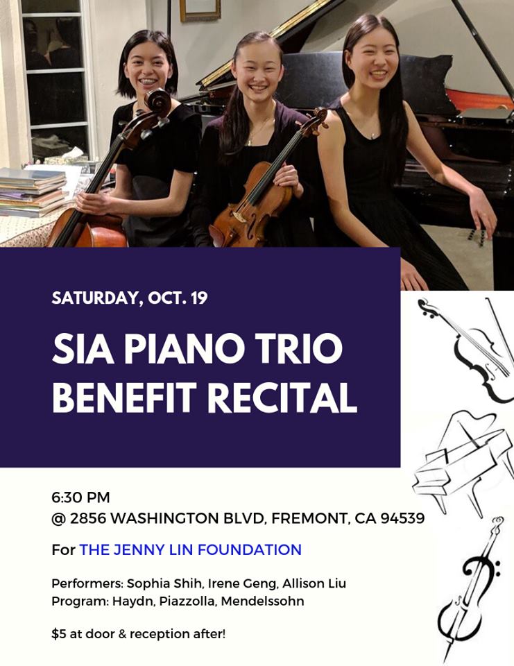 Piano Trio Performance to Benefit the Jenny Lin Youth Music Program Posted byJenny Lin FoundationOctober 9, 2019January 2, 2024Posted inPast News Please come enjoy some chamber music and stay for the free food! Share this: Share on Facebook (Opens in new window) Facebook Email a link to a friend (Opens in new window) Email Related